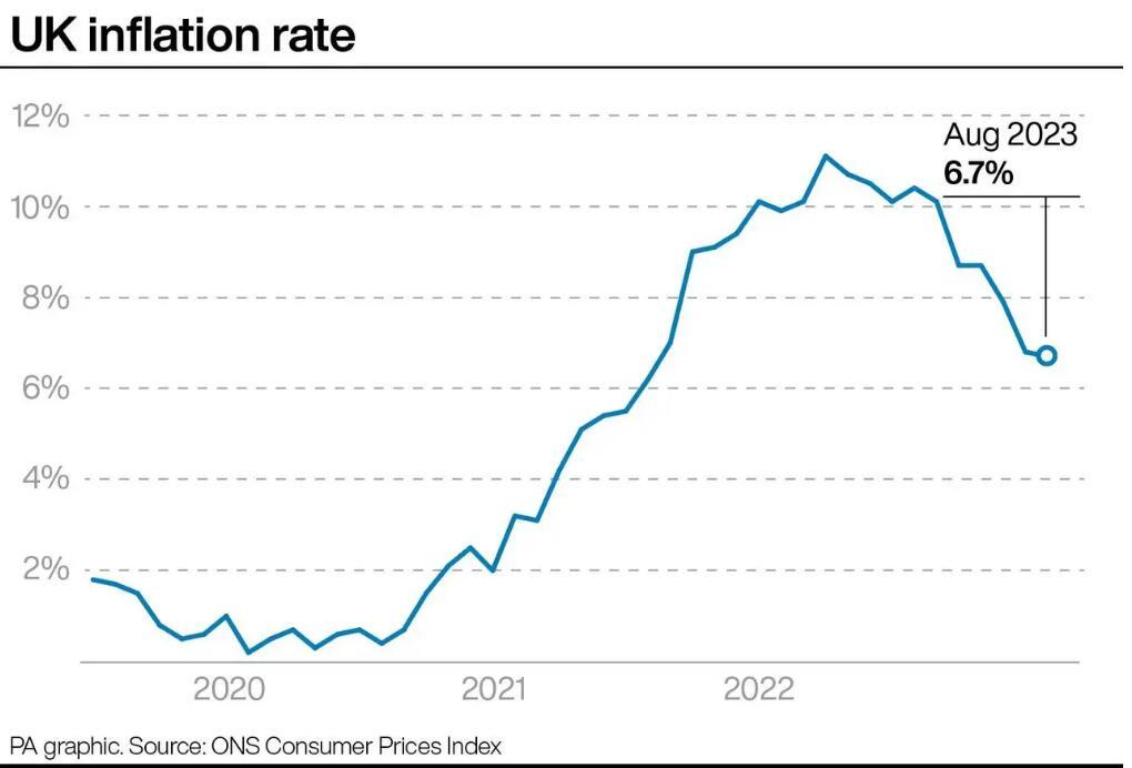 英国国家统计局表示,8月份通胀率为6.7%,低于7月份的 6.8%。央行本身早些时候预测8月份通胀率为7.1%。