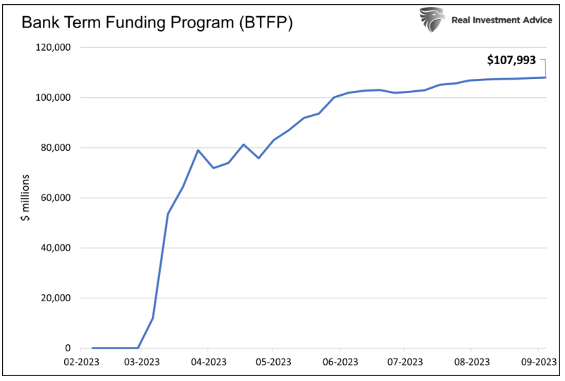 项目实施六个月后,BTFP余额继续增长,尽管增长缓慢。该计划于三月结束。因此,从现在到那时,他们可以延长该计划并展期现有贷款或终止它。该计划是量化宽松的一种形式,因此美联储可能会将现有贷款展期视为引发通胀。然而,关闭贷款机构将重新引发危机。