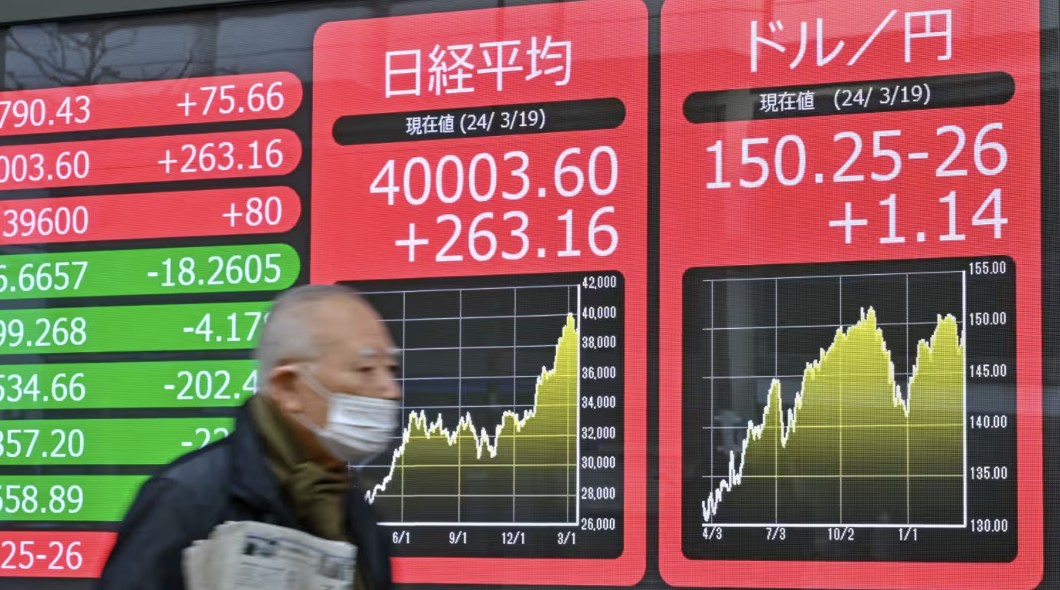 在日本央行宣布这一具有历史性意义的货币政策调整后,日本股市继续上扬,收盘涨0.66%,仍在站在40000点以上。而日元汇率则持续走低,日元兑美元汇率下跌0.78%,至150.29。