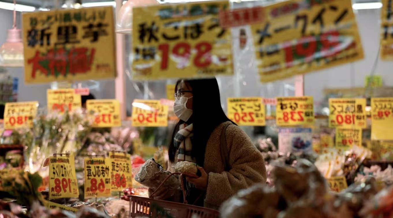 一名日本消费者查看市场的价格牌(图源:社交媒体)