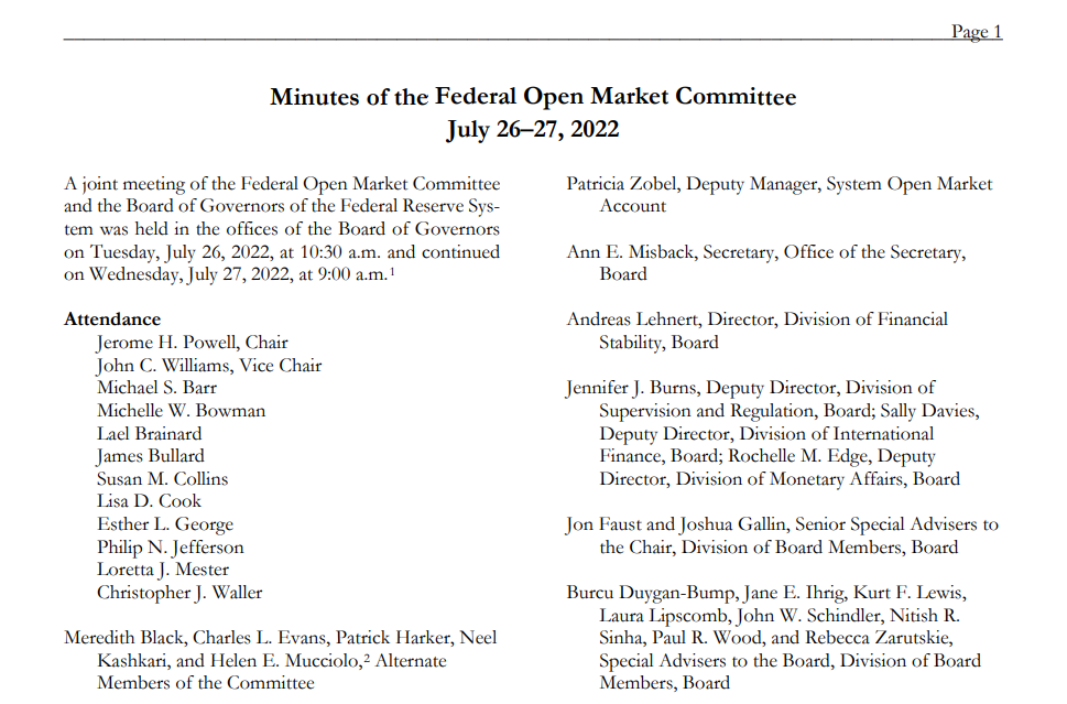 财联社8月18日讯(编辑 史正丞)北京时间周四凌晨2点,美联储准时披露了7月公开市场委员会的议息会议纪要,分享了政策制定者连续加息75个基点背后的考量。