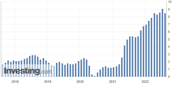 (美国CPI同比变化 来源:英为财情)