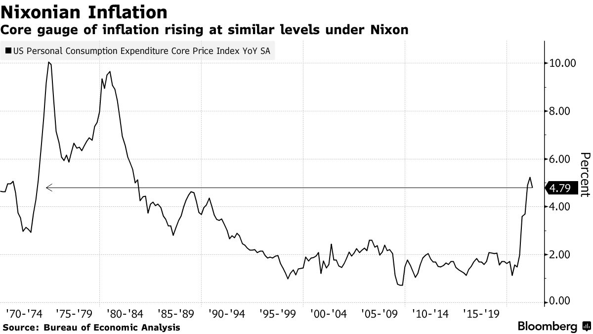 “剔除食品和能源等大宗商品,眼下的美国核心通胀率处于正负5%左右。该水平比70年代时任美国总统的尼克松实施价格控制时的水平要高。这是任何维度都不能接受的。”