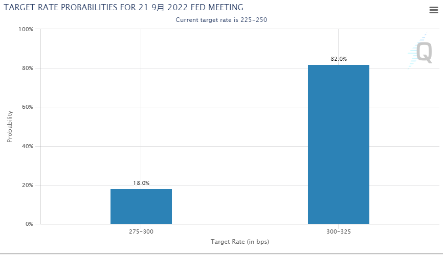在华尔街日报发文之后,芝商所的美联储观察工具显示,市场预期该行在9月会议上加息75个基点的概率骤然升至82%,在此之前,这一数字为73%。