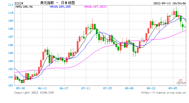 美元指数日线图北京时间9月13日10:32,美元指数报108.2417