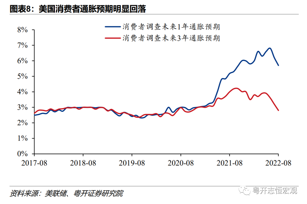 后续加息幅度将逐步回落。一是消费者通胀预期回落,表明加息已经开始限制需求。美联储无条件抗通胀的立场已经明确,市场沟通已经奏效。根据纽约联储9月的消费者预期调查,未来一年的通胀预期从6.8%的高点回落至6.2%。二是失业率小幅上行,过度紧缩的风险逐渐出现。8月美国失业率上升0.2个百分点至3.7%,劳动力市场动能放缓,未来加息至限制性水平上方,失业可能会大幅增加。