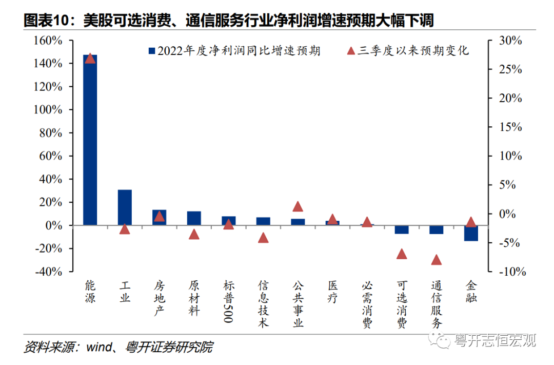 警惕估值盈利双杀,美股或有二次探底风险。一是流动性预期转向紧缩压制估值。7月以来的美股反弹,主要源于市场对美联储放缓加息甚至明年降息的乐观预期。而美联储重申加息抗通胀的决心后,美股估值受到紧缩预期的压制。二是当前美股盈利下滑还刚开始,美联储加息至中性利率以上,对经济需求的打压力度将更强,特别是可选消费、通信服务行业的盈利预期被大幅下调。