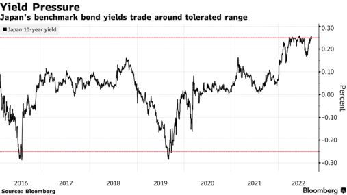 日本国债在6月面临沉重的抛售压力,日本央行通过空前的购买才将基准收益率保持在0.25%的上限以下。尽管其他许多发达国家的政策制定者都在提高利率以控制通胀,日本央行行长黑田东彦强调了他维持低利率的决心。
