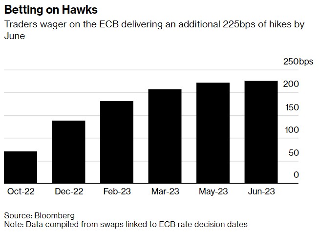 目前,交易员押注欧洲央行将在明年6月前将其关键利率上调至3%,这是本月初预期水平的两倍。
