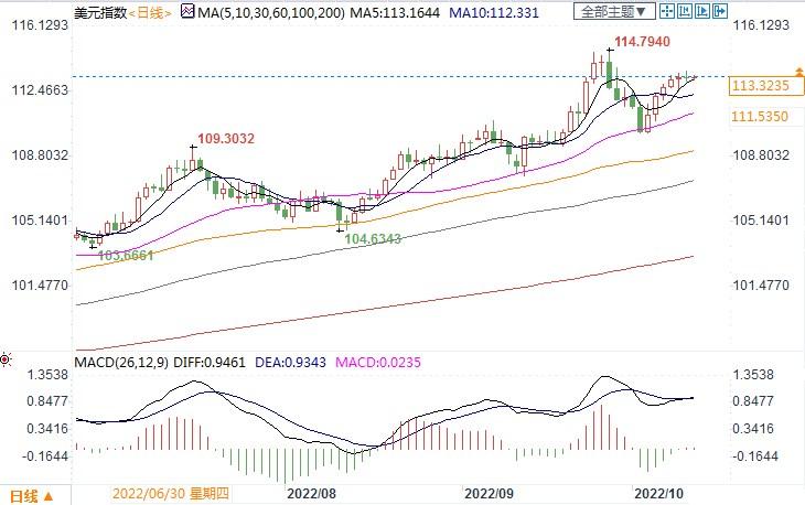 北京时间10月13日11:16,美元指数报113.31