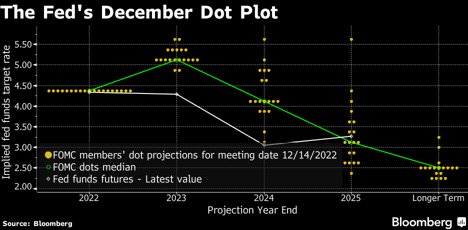 美联储去年12月发布的“点阵图”(图片来源:彭博社)