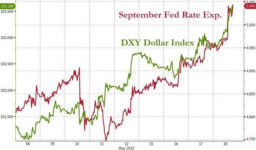 与美联储会议日期挂钩的期货合约在一周前曾显示,美联储在下个月几乎不可能加息。然而,目前体现出的加息隐含定价已达到了约10个基点——即美联储6月加息25个基点的机率约为40%。