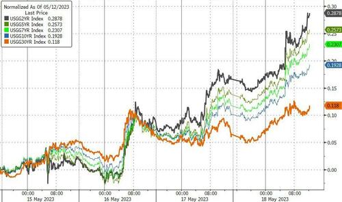 从消息面看,目前影响美债收益率水平和市场利率定价的因素,主要包含了美国银行业危机和债务上限僵局相关的风险,而这两方面近几天的进展整体偏于正面。