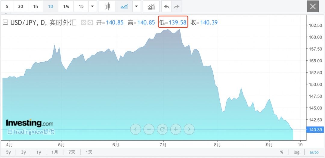 由于,美联储与日本央行的政策预期出现分化,美日收益率差缩小,日元兑美元汇率持续走高,今日一度突破140的关键心理水平,日内最高报139.58,为2023年7月以来的最高水准,日元已经成为第三季度表现最好的G-10货币,累计涨幅已超15%。