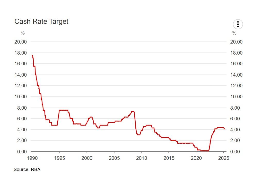 澳洲联储的预测显示,现金利率预计在2025年6月为4.0%,2025年12月为3.6%,2026年6月为3.4%。